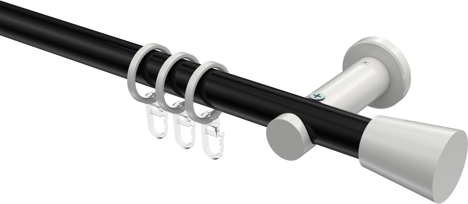 Gardinenstangen aus Metall in 20 mm Ø, 1-läufig, Modell PLATON - Sitra Schwarz / Weiß