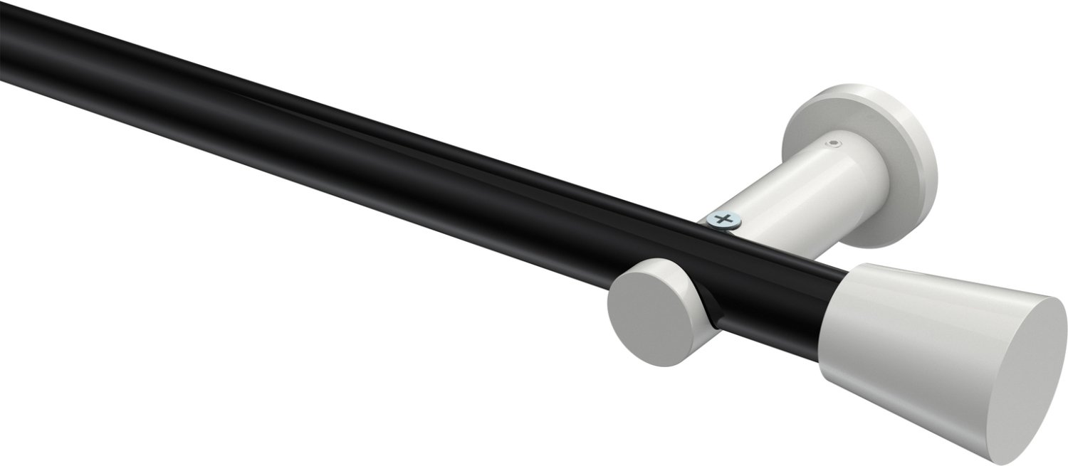 Gardinenstangen aus Metall in 20 mm Ø, 1-läufig, Modell PLATON - Sitra Schwarz / Weiß (ohne Ringe)