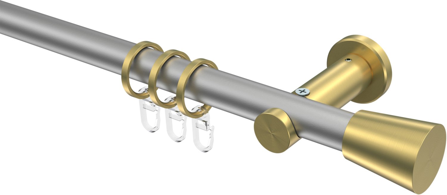 Gardinenstangen aus Metall in 20 mm Ø, 1-läufig, Modell PLATON - Sitra Silbergrau / Messing-Optik