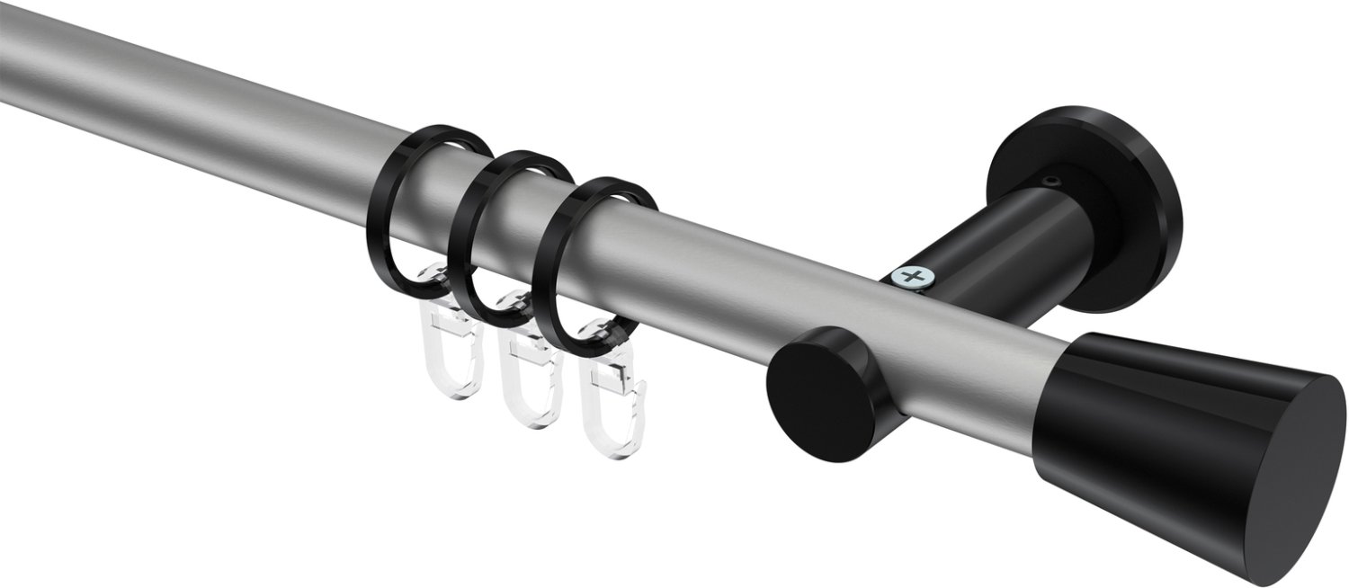 Gardinenstangen aus Metall in 20 mm Ø, 1-läufig, Modell PLATON - Sitra Silbergrau / Schwarz