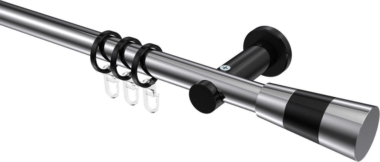 Gardinenstangen aus Metall in 20 mm Ø, 1-läufig, Modell PLATON - Tanara Chrom / Schwarz