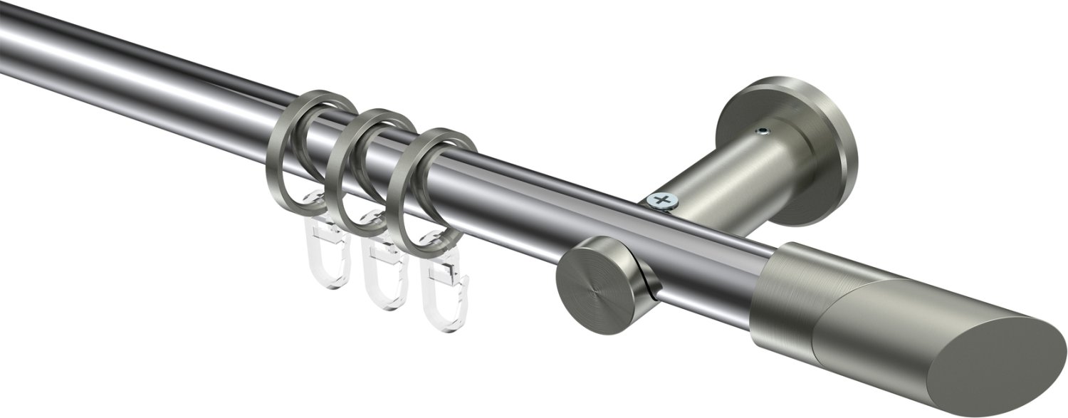 Gardinenstangen aus Metall in 20 mm Ø, 1-läufig, Modell PLATON - Verano Chrom / Edelstahl-Optik