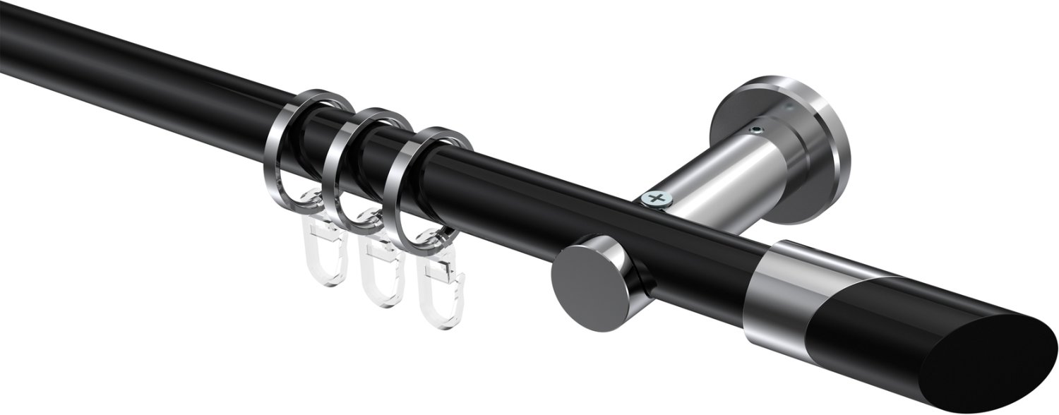 Gardinenstangen aus Metall in 20 mm Ø, 1-läufig, Modell PLATON - Verano Schwarz / Chrom