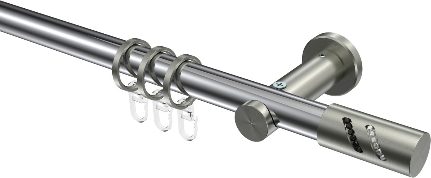 Gardinenstangen aus Metall in 20 mm Ø, 1-läufig, Modell PLATON - Zoena Chrom / Edelstahl-Optik