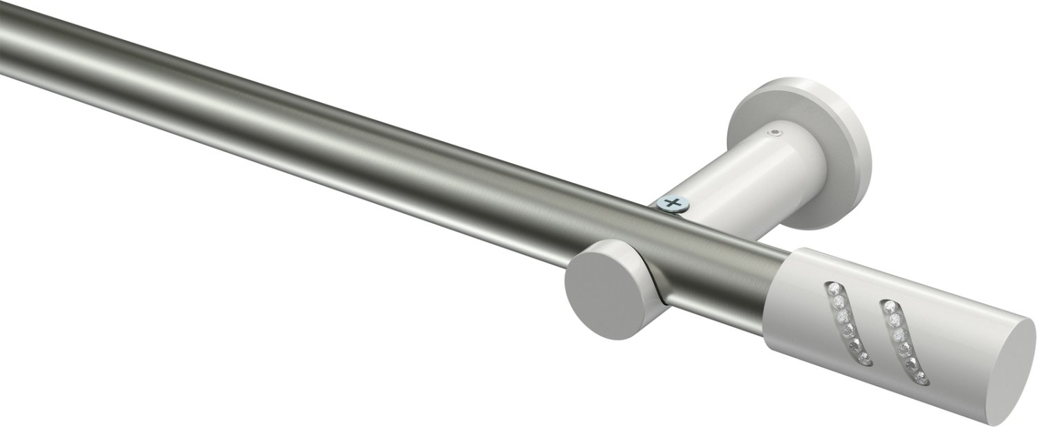Gardinenstangen aus Metall in 20 mm Ø, 1-läufig, Modell PLATON - Zoena Edelstahl-Optik / Weiß (ohne Ringe)
