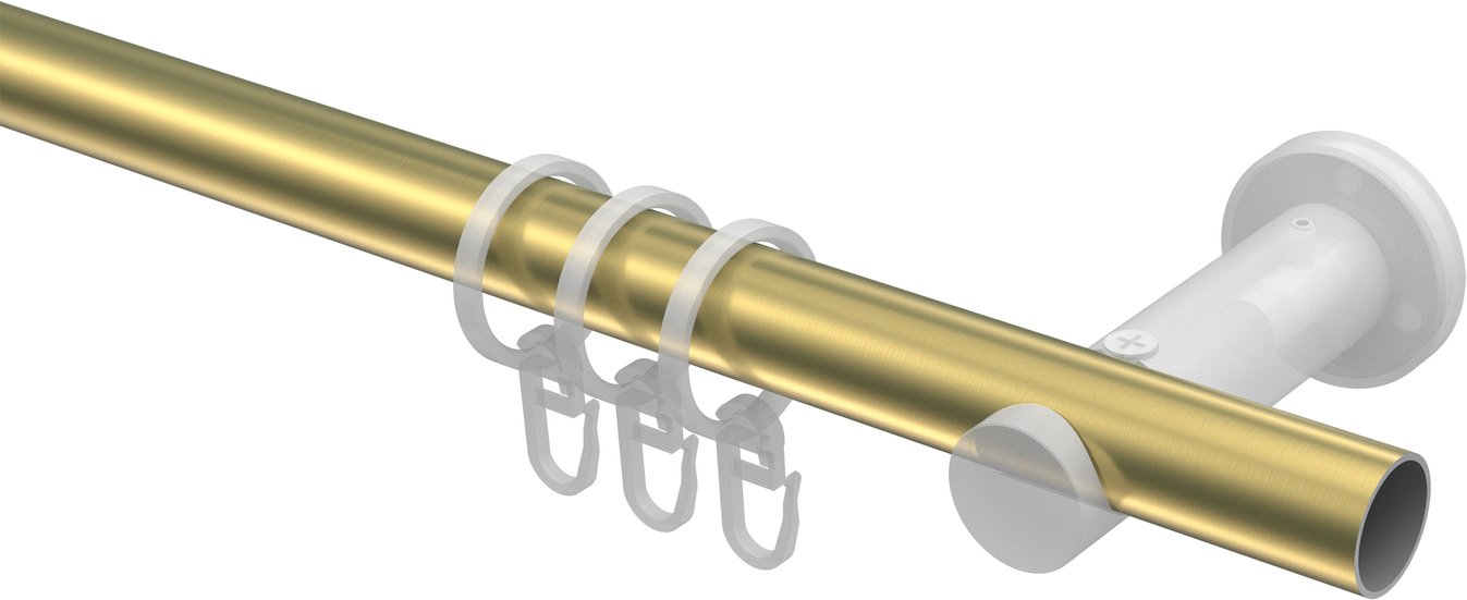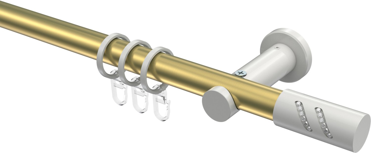 Gardinenstangen aus Metall in 20 mm Ø, 1-läufig, Modell PLATON - Zoena Messing-Optik / Weiß