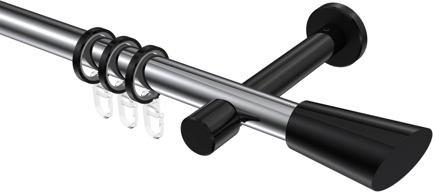 Gardinenstangen aus Metall in 20 mm Ø, 1-läufig, Modell PRESTIGE - Bento Chrom / Schwarz