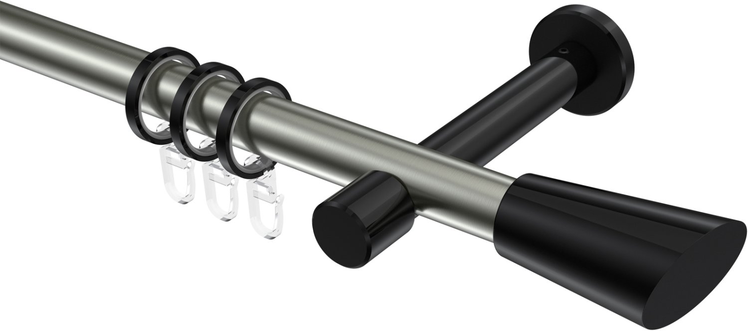 Gardinenstangen aus Metall in 20 mm Ø, 1-läufig, Modell PRESTIGE - Bento Edelstahl-Optik / Schwarz