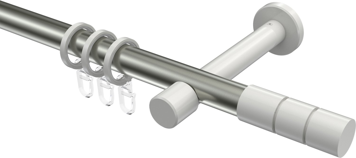 Gardinenstangen aus Metall in 20 mm Ø, 1-läufig, Modell PRESTIGE - Elanto Edelstahl-Optik / Weiß