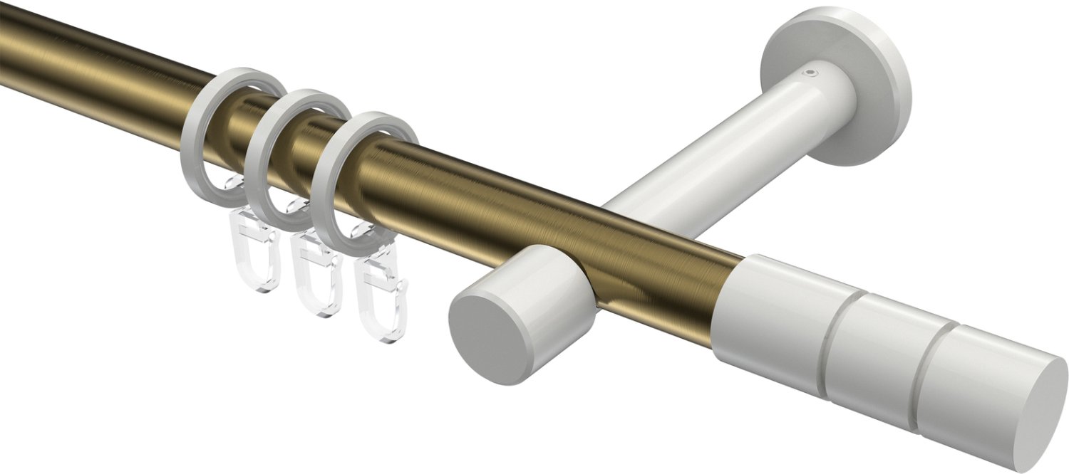 Gardinenstangen aus Metall in 20 mm Ø, 1-läufig, Modell PRESTIGE - Elanto Messing Antik / Weiß