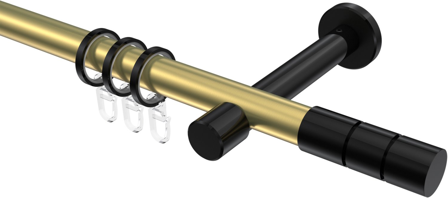 Gardinenstangen aus Metall in 20 mm Ø, 1-läufig, Modell PRESTIGE - Elanto Messing-Optik / Schwarz