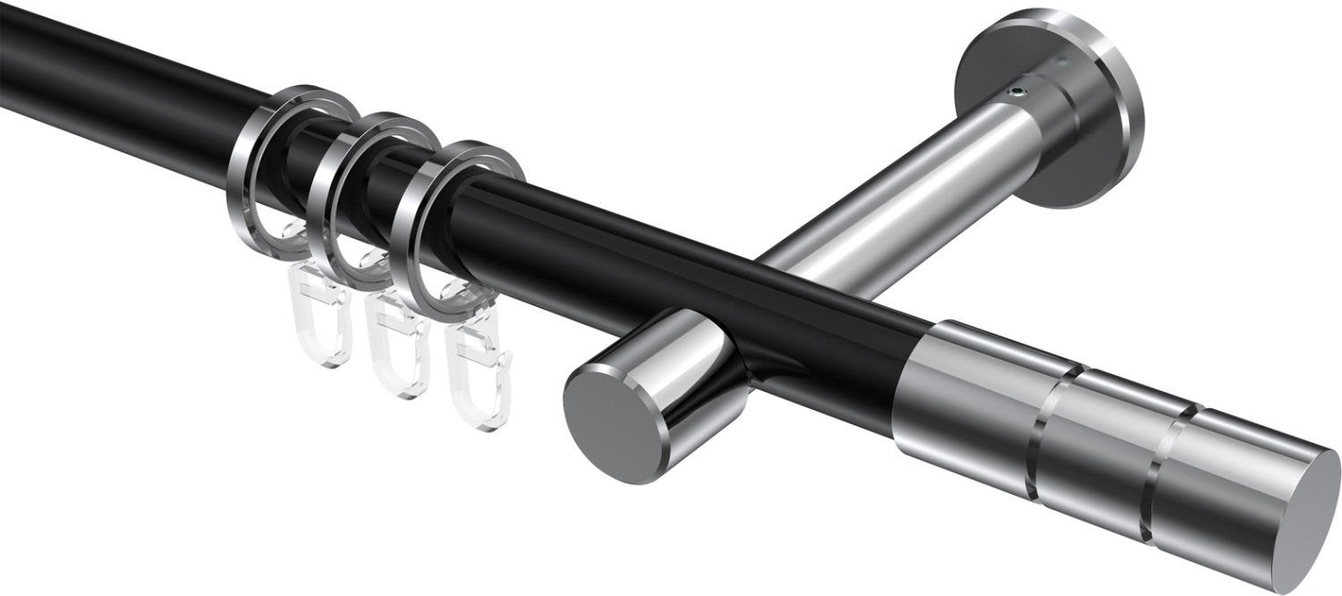 Gardinenstangen aus Metall in 20 mm Ø, 1-läufig, Modell PRESTIGE - Elanto Schwarz / Chrom