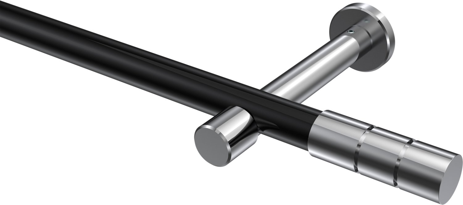 Informationen zu Gardinenstange Metall 20 mm Ø PRESTIGE - Elanto Schwarz / Chrom (ohne Ringe):