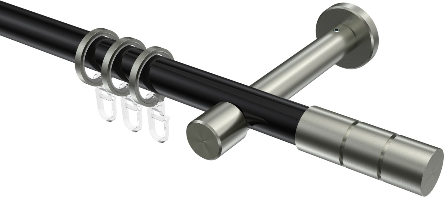 Informationen zu Gardinenstange Metall 20 mm Ø PRESTIGE - Elanto Schwarz / Edelstahl-Optik: