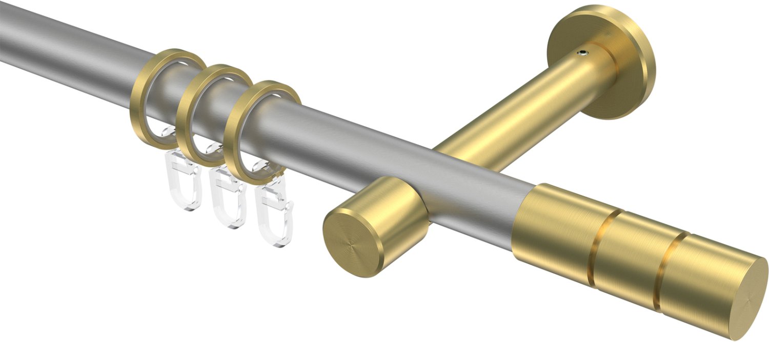 Gardinenstangen aus Metall in 20 mm Ø, 1-läufig, Modell PRESTIGE - Elanto Silbergrau / Messing-Optik