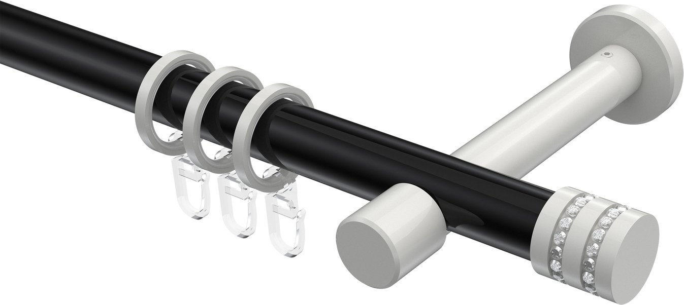 Gardinenstangen aus Metall in 20 mm Ø, 1-läufig, Modell PRESTIGE - Estana Schwarz / Weiß