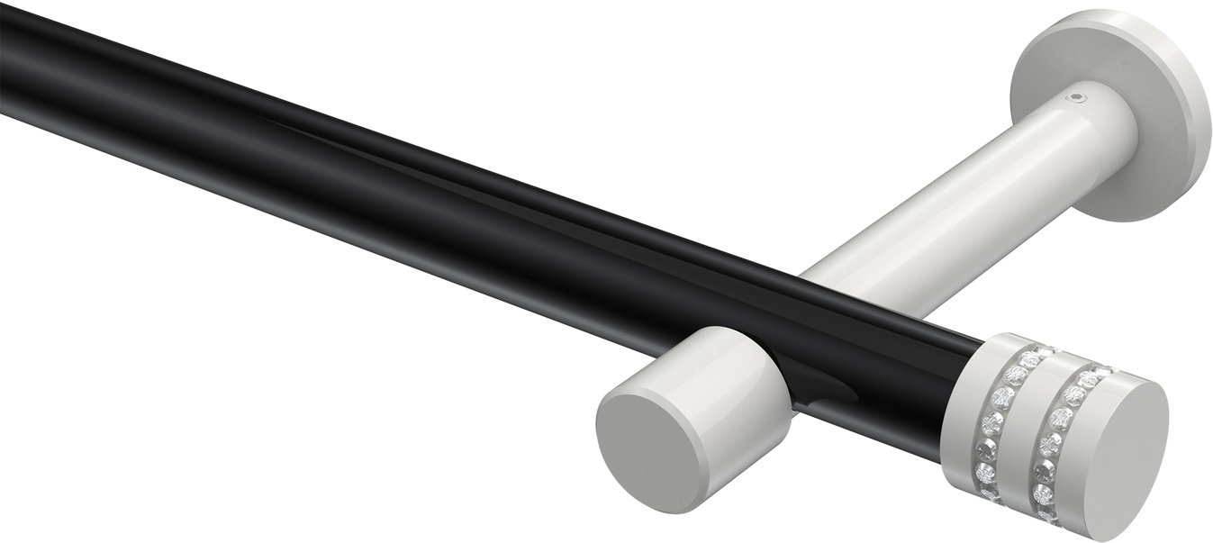 Gardinenstangen aus Metall in 20 mm Ø, 1-läufig, Modell PRESTIGE - Estana Schwarz / Weiß (ohne Ringe)