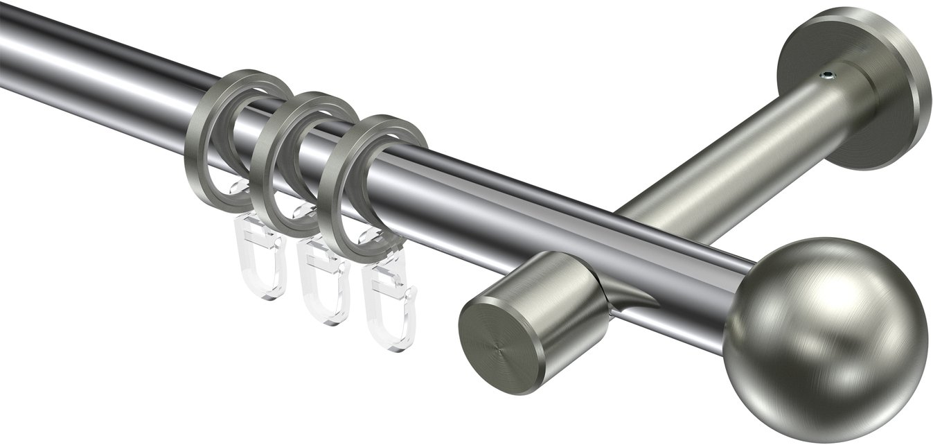 Gardinenstangen aus Metall in 20 mm Ø, 1-läufig, Modell PRESTIGE - Luino Chrom / Edelstahl-Optik