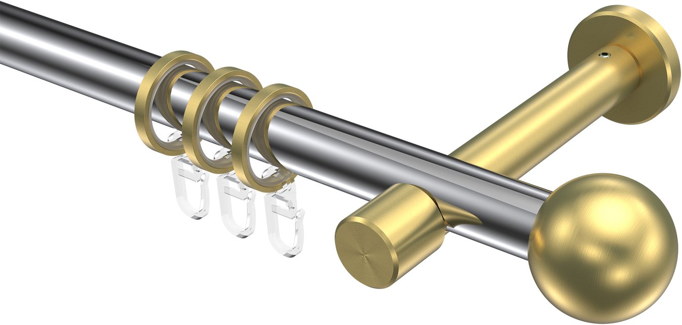 Gardinenstangen aus Metall in 20 mm Ø, 1-läufig, Modell PRESTIGE - Luino Chrom / Messing-Optik