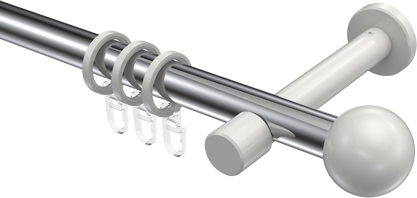 Gardinenstangen aus Metall in 20 mm Ø, 1-läufig, Modell PRESTIGE - Luino Chrom / Weiß