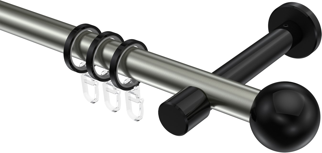 Gardinenstangen aus Metall in 20 mm Ø, 1-läufig, Modell PRESTIGE - Luino Edelstahl-Optik / Schwarz