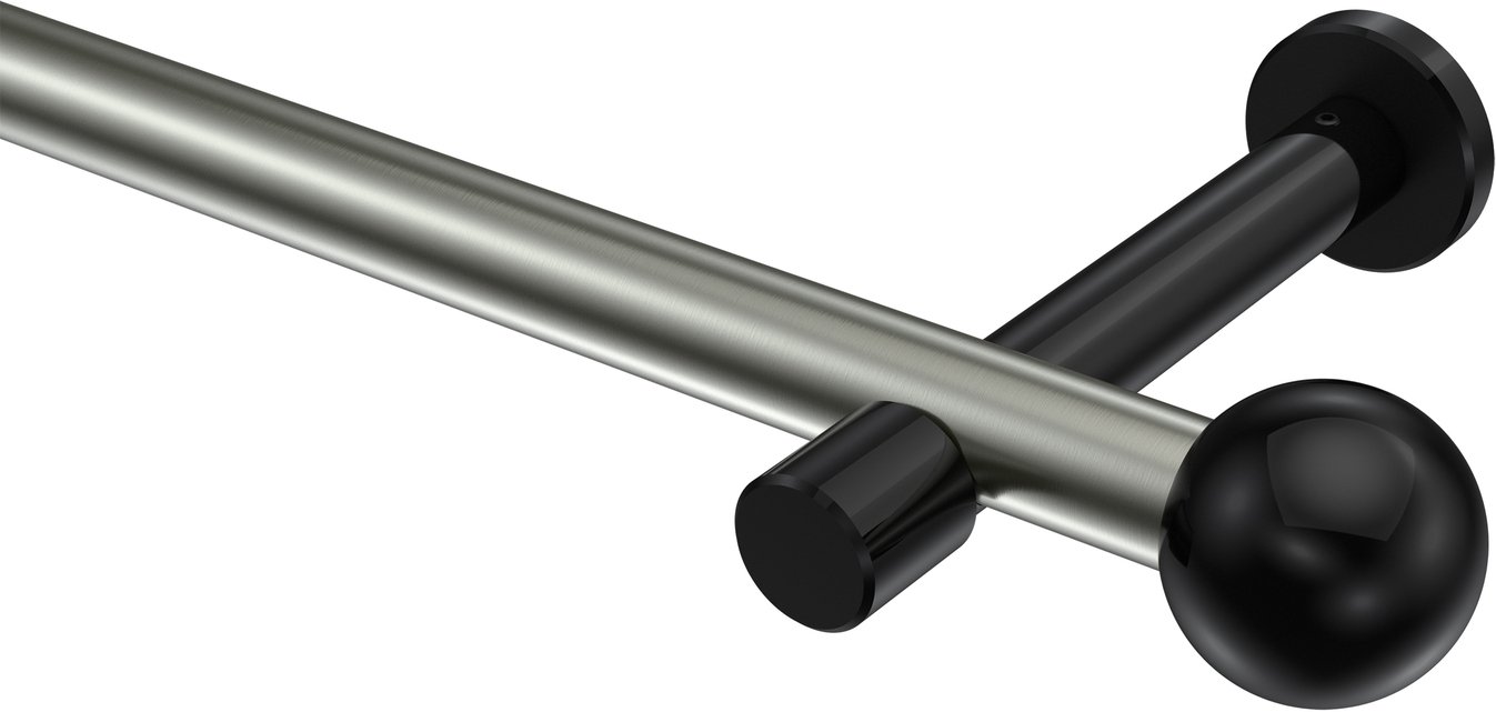 Gardinenstangen aus Metall in 20 mm Ø, 1-läufig, Modell PRESTIGE - Luino Edelstahl-Optik / Schwarz (ohne Ringe)