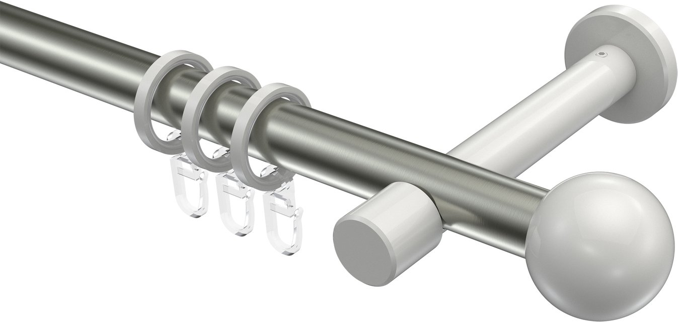 Gardinenstangen aus Metall in 20 mm Ø, 1-läufig, Modell PRESTIGE - Luino Edelstahl-Optik / Weiß