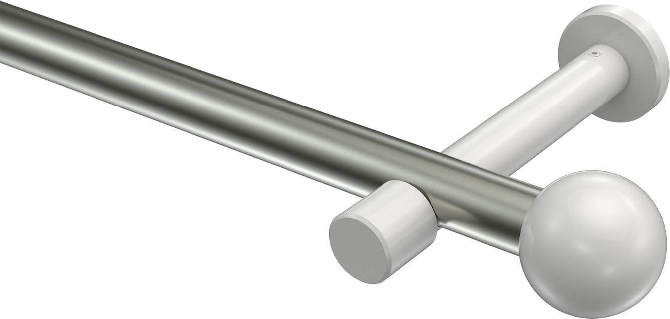 Informationen zu Gardinenstange Metall 20 mm Ø PRESTIGE - Luino Edelstahl-Optik / Weiß (ohne Ringe):