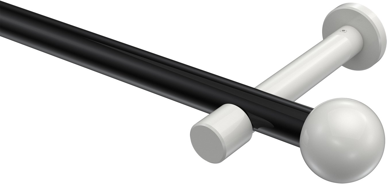 Gardinenstangen aus Metall in 20 mm Ø, 1-läufig, Modell PRESTIGE - Luino Schwarz / Weiß (ohne Ringe)