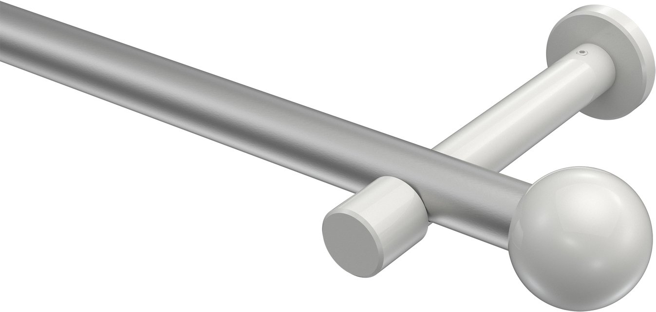 Informationen zu Gardinenstange Metall 20 mm Ø PRESTIGE - Luino Silbergrau / Weiß (ohne Ringe):
