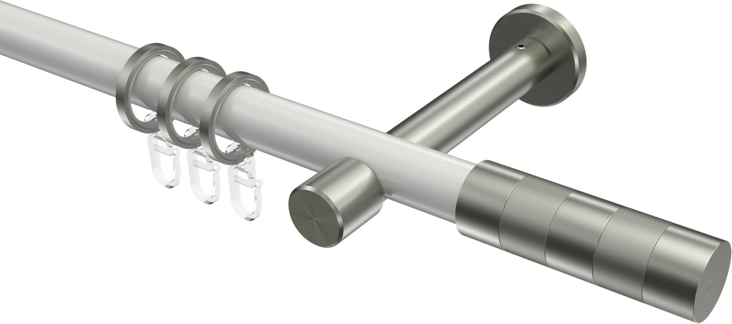 Gardinenstangen aus Metall in 20 mm Ø, 1-läufig, Modell PRESTIGE - Mavell Weiß / Edelstahl-Optik