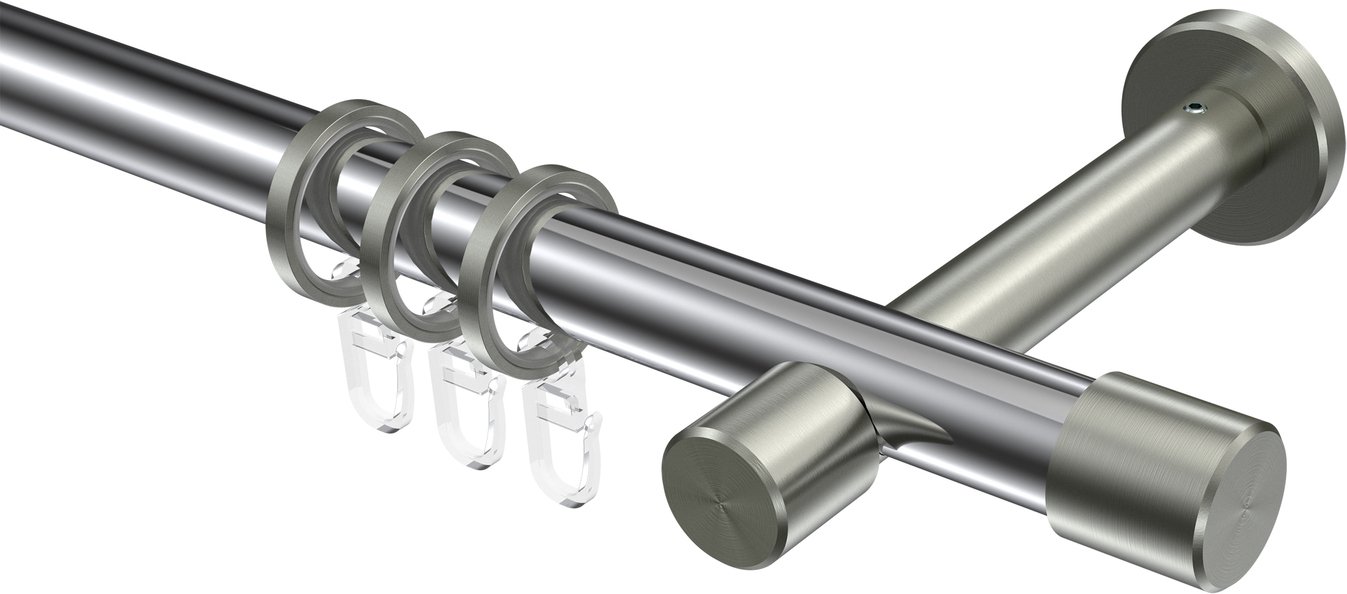 Gardinenstangen aus Metall in 20 mm Ø, 1-läufig, Modell PRESTIGE - Santo Chrom / Edelstahl-Optik