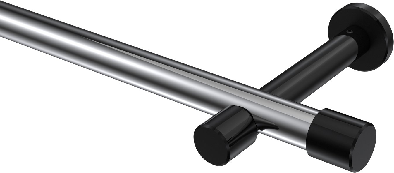 Gardinenstangen aus Metall in 20 mm Ø, 1-läufig, Modell PRESTIGE - Santo Chrom / Schwarz (ohne Ringe)