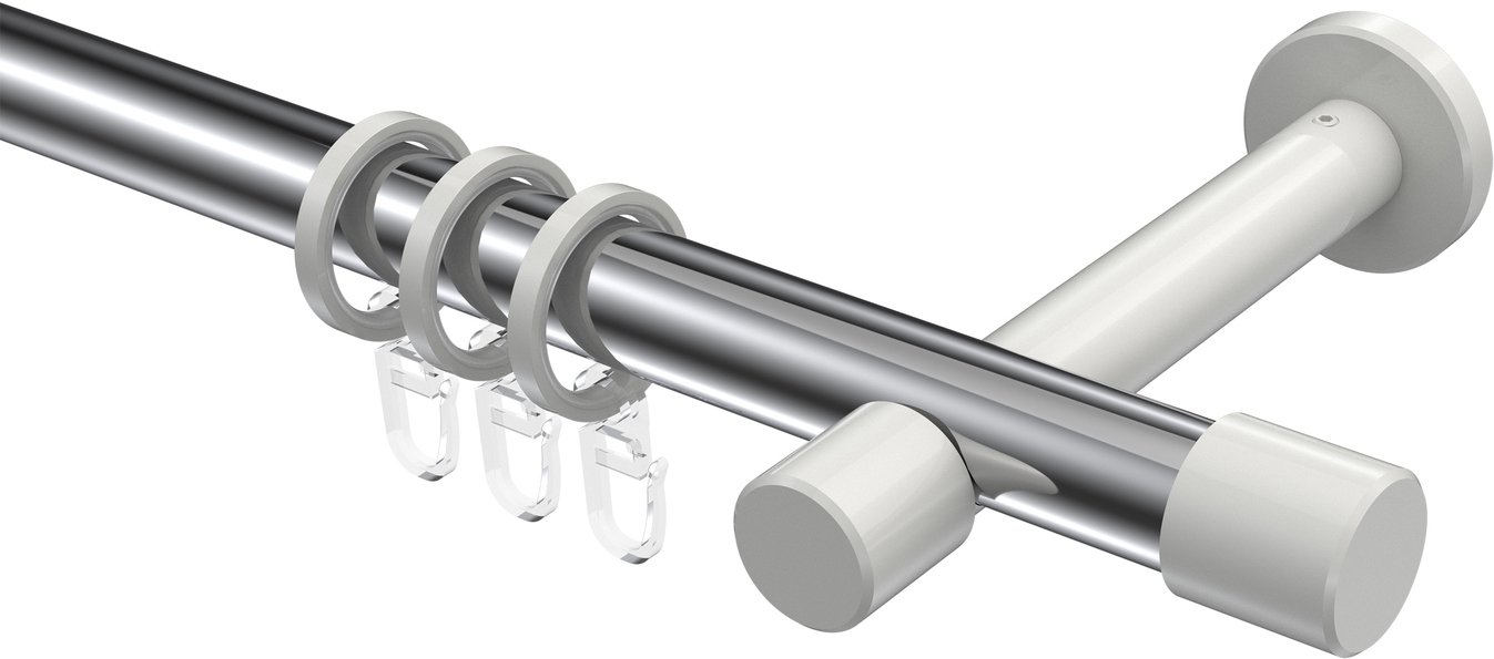 Gardinenstangen aus Metall in 20 mm Ø, 1-läufig, Modell PRESTIGE - Santo Chrom / Weiß