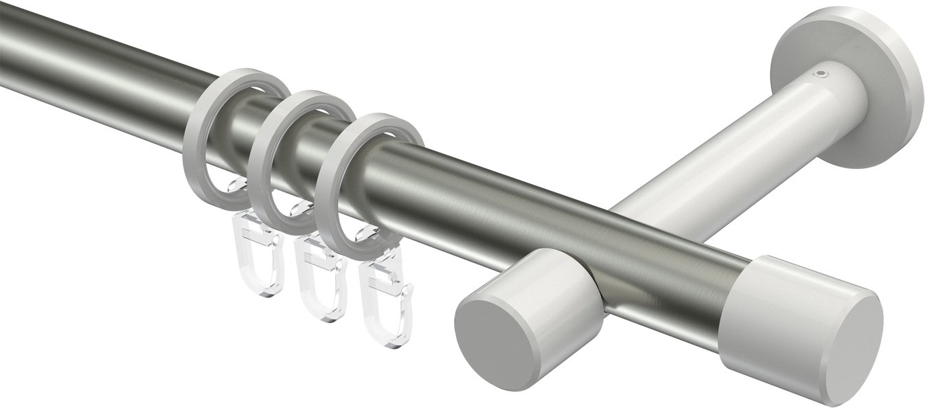 Gardinenstangen aus Metall in 20 mm Ø, 1-läufig, Modell PRESTIGE - Santo Edelstahl-Optik / Weiß