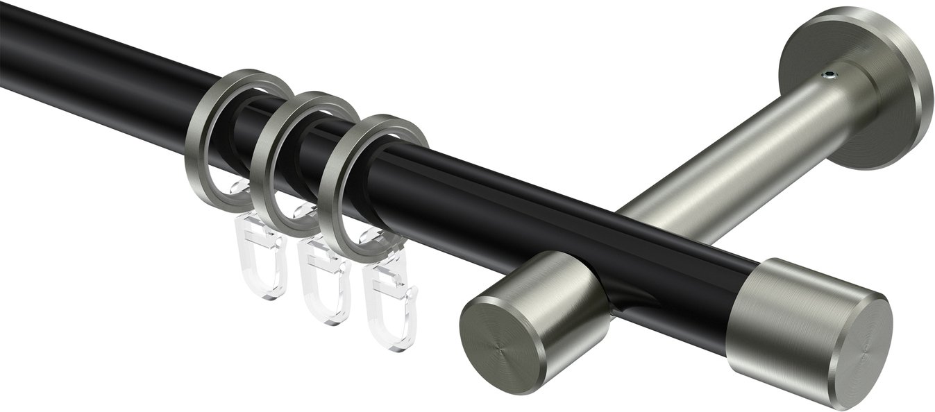 Informationen zu Gardinenstange Metall 20 mm Ø PRESTIGE - Santo Schwarz / Edelstahl-Optik: