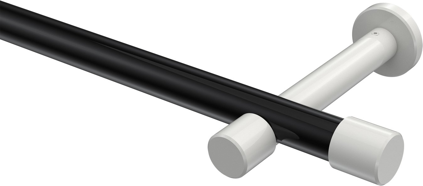 Gardinenstangen aus Metall in 20 mm Ø, 1-läufig, Modell PRESTIGE - Santo Schwarz / Weiß (ohne Ringe)