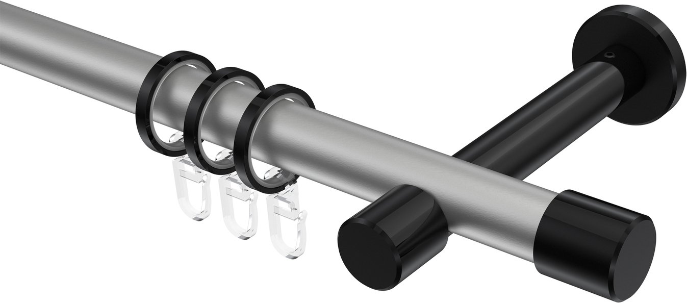 Gardinenstangen aus Metall in 20 mm Ø, 1-läufig, Modell PRESTIGE - Santo Silbergrau / Schwarz