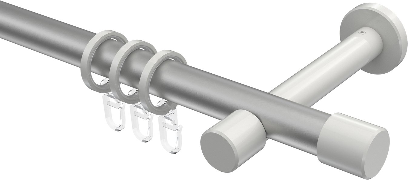 Gardinenstangen aus Metall in 20 mm Ø, 1-läufig, Modell PRESTIGE - Santo Silbergrau / Weiß