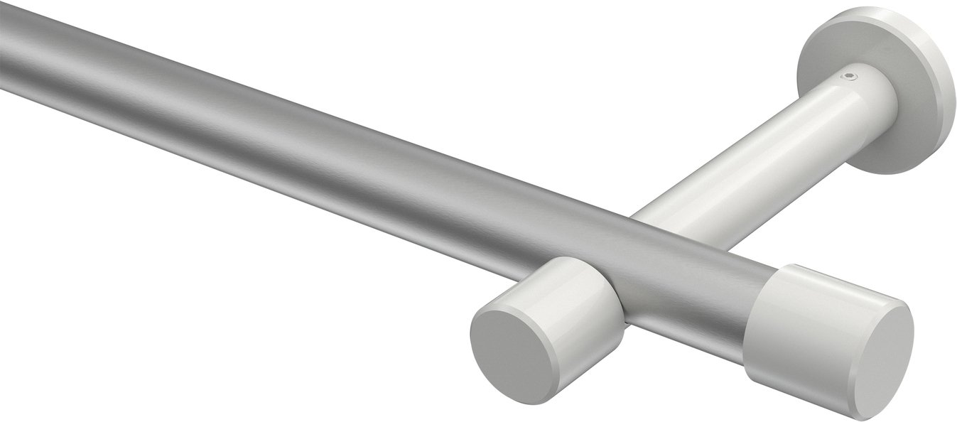 Gardinenstangen aus Metall in 20 mm Ø, 1-läufig, Modell PRESTIGE - Santo Silbergrau / Weiß (ohne Ringe)
