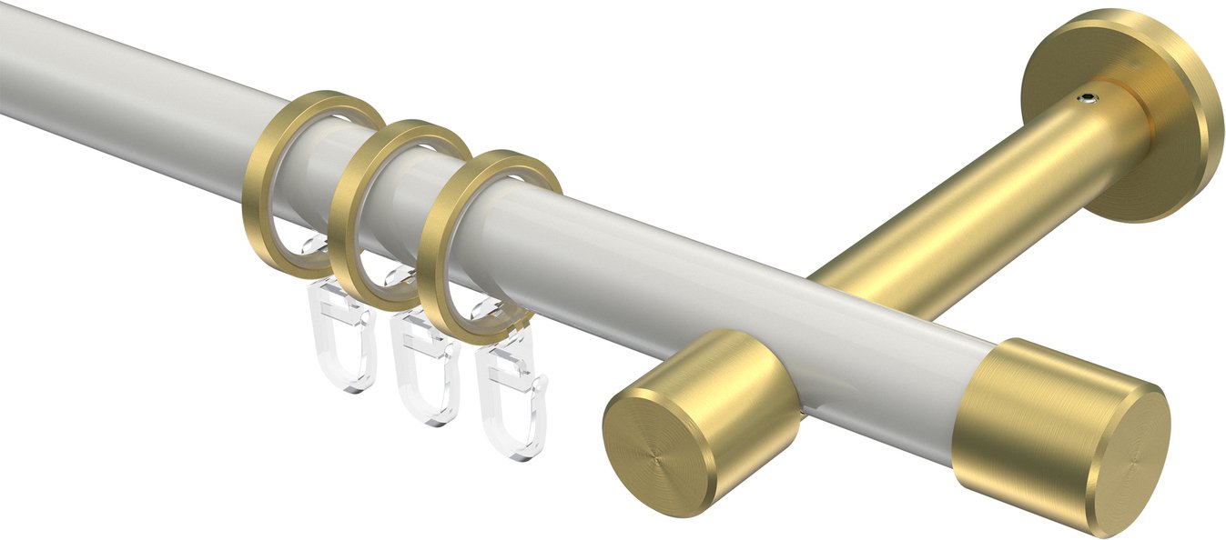 Gardinenstangen aus Metall in 20 mm Ø, 1-läufig, Modell PRESTIGE - Santo Weiß / Messing-Optik