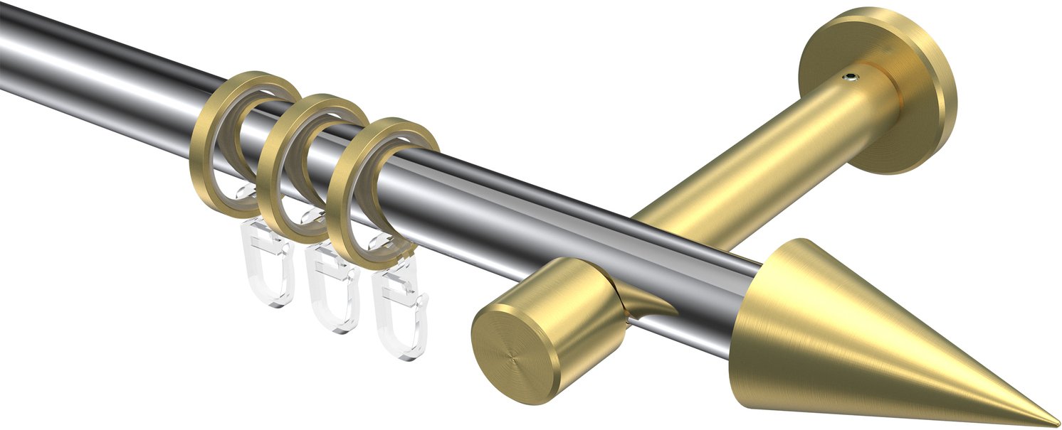 Gardinenstangen aus Metall in 20 mm Ø, 1-läufig, Modell PRESTIGE - Savio Chrom / Messing-Optik