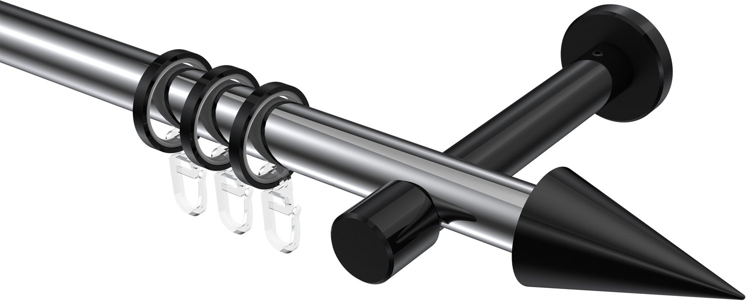 Gardinenstangen aus Metall in 20 mm Ø, 1-läufig, Modell PRESTIGE - Savio Chrom / Schwarz