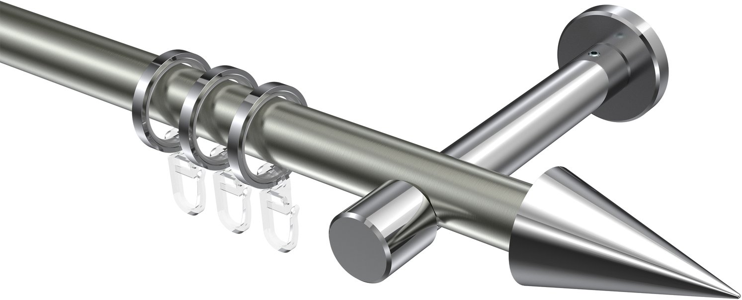 Gardinenstangen aus Metall in 20 mm Ø, 1-läufig, Modell PRESTIGE - Savio Edelstahl-Optik / Chrom