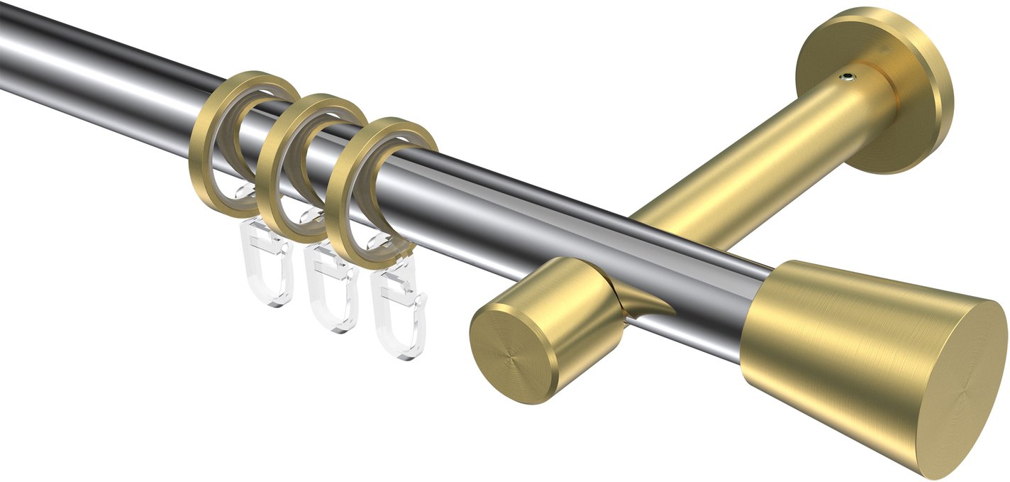 Gardinenstangen aus Metall in 20 mm Ø, 1-läufig, Modell PRESTIGE - Sitra Chrom / Messing-Optik