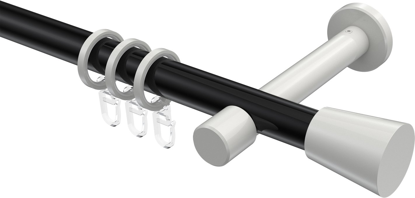 Gardinenstangen aus Metall in 20 mm Ø, 1-läufig, Modell PRESTIGE - Sitra Schwarz / Weiß