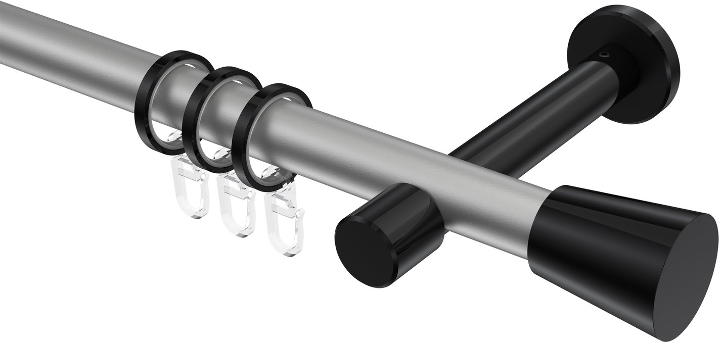 Gardinenstangen aus Metall in 20 mm Ø, 1-läufig, Modell PRESTIGE - Sitra Silbergrau / Schwarz