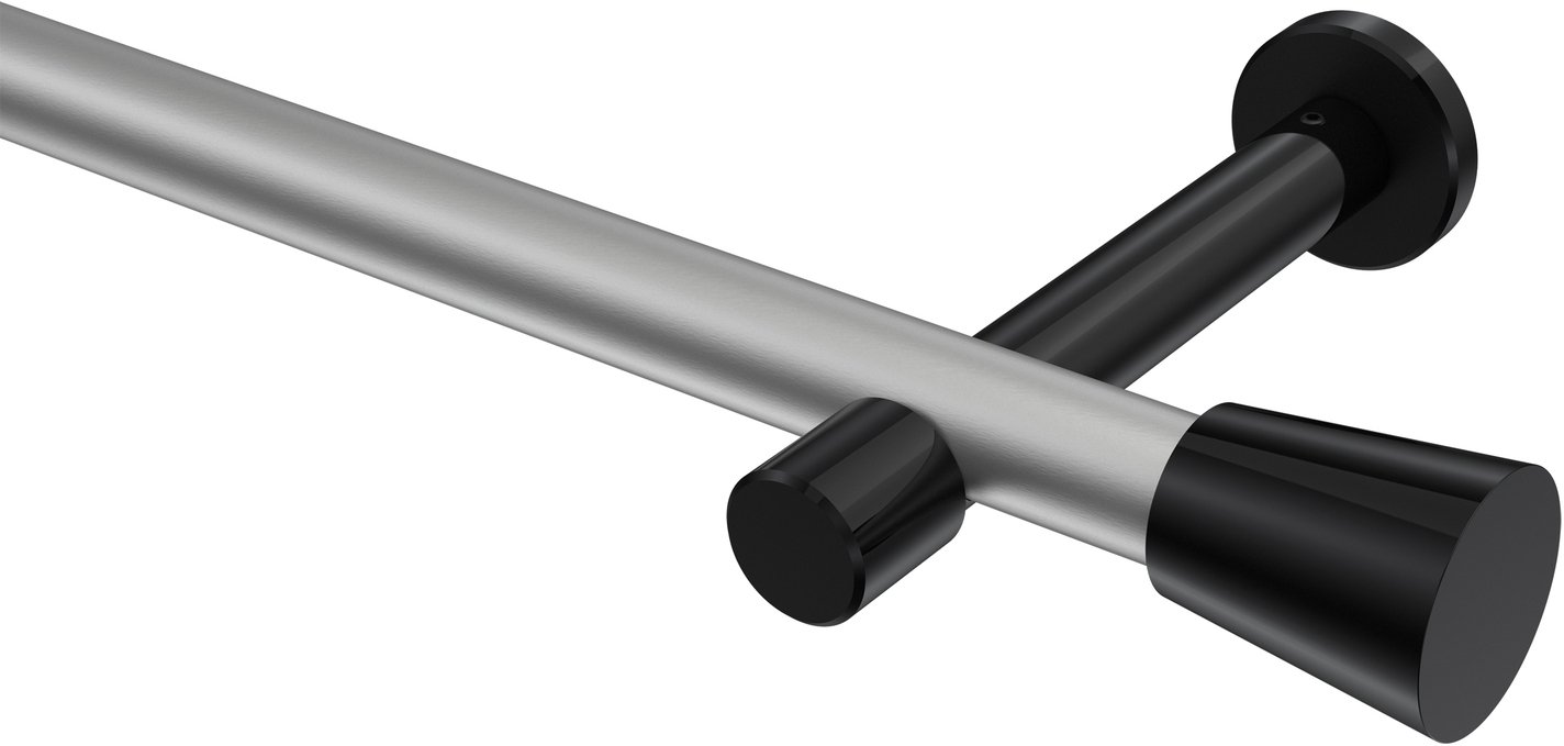 Gardinenstangen aus Metall in 20 mm Ø, 1-läufig, Modell PRESTIGE - Sitra Silbergrau / Schwarz (ohne Ringe)