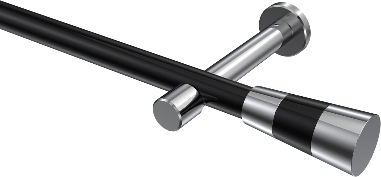 Gardinenstangen aus Metall in 20 mm Ø, 1-läufig, Modell PRESTIGE - Tanara Schwarz / Chrom (ohne Ringe)