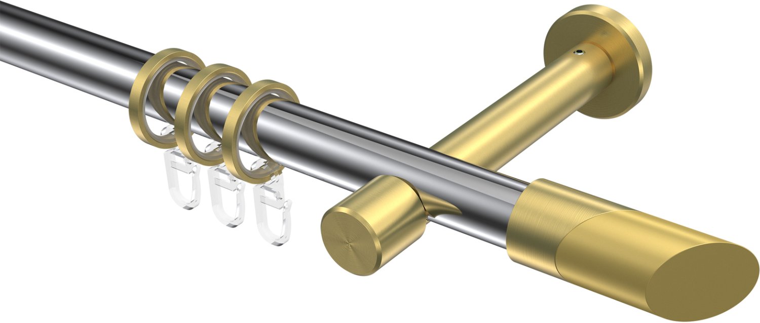 Gardinenstangen aus Metall in 20 mm Ø, 1-läufig, Modell PRESTIGE - Verano Chrom / Messing-Optik